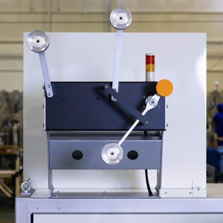 ダンサーローラを配置することで糸のたるみを防止し、安定した巻き取りを実現します。